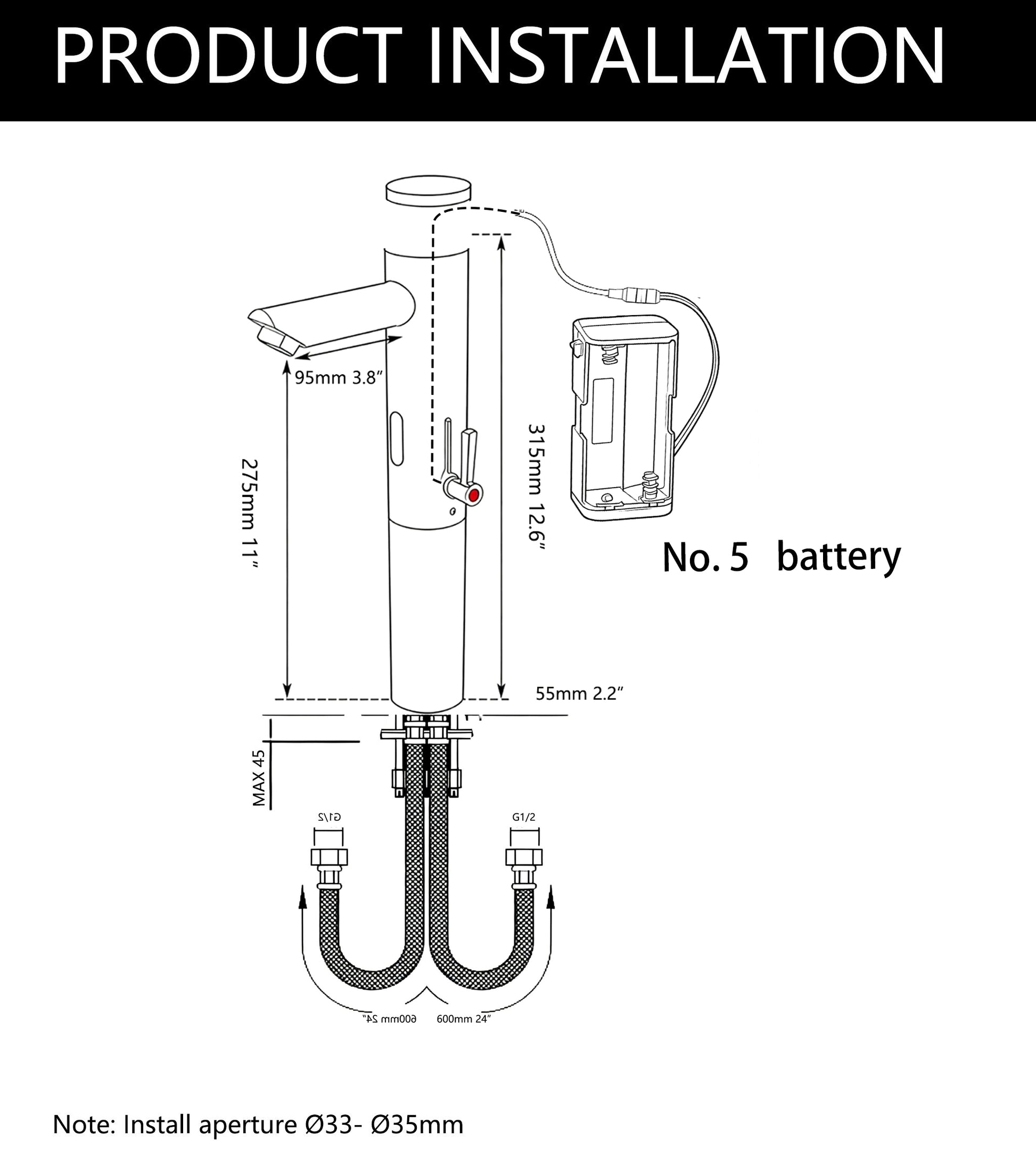 - Höhe des schwarzen Ausgusses: 275 MM