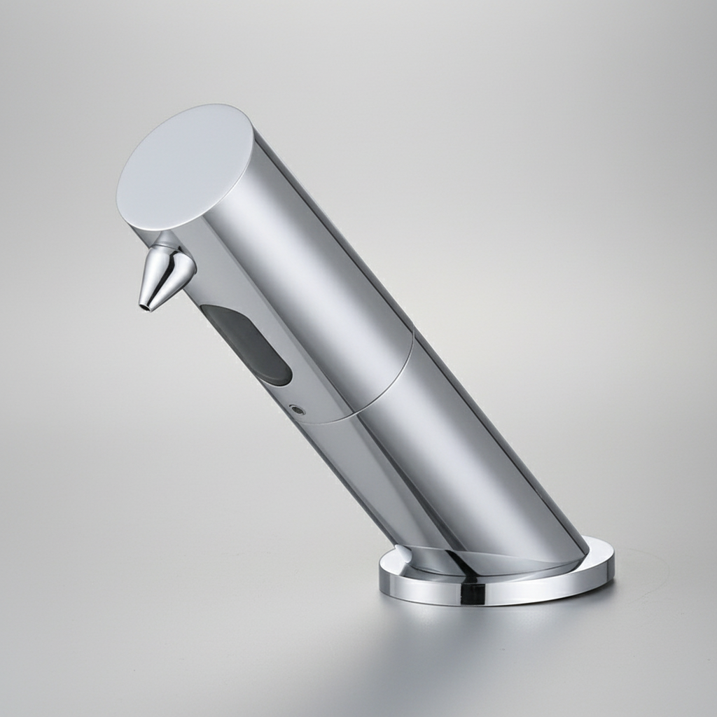 Der automatische Seifenspender Sensomatica ist ein verchromtes Einbaumodell mit stilvollem, rundem Design, ideal für moderne Badezimmer und Küchen. Dank der Infrarotsteuerung bietet dieser Spender maximale Hygiene und Komfort, da Sie das Gerät nicht berühren müssen.