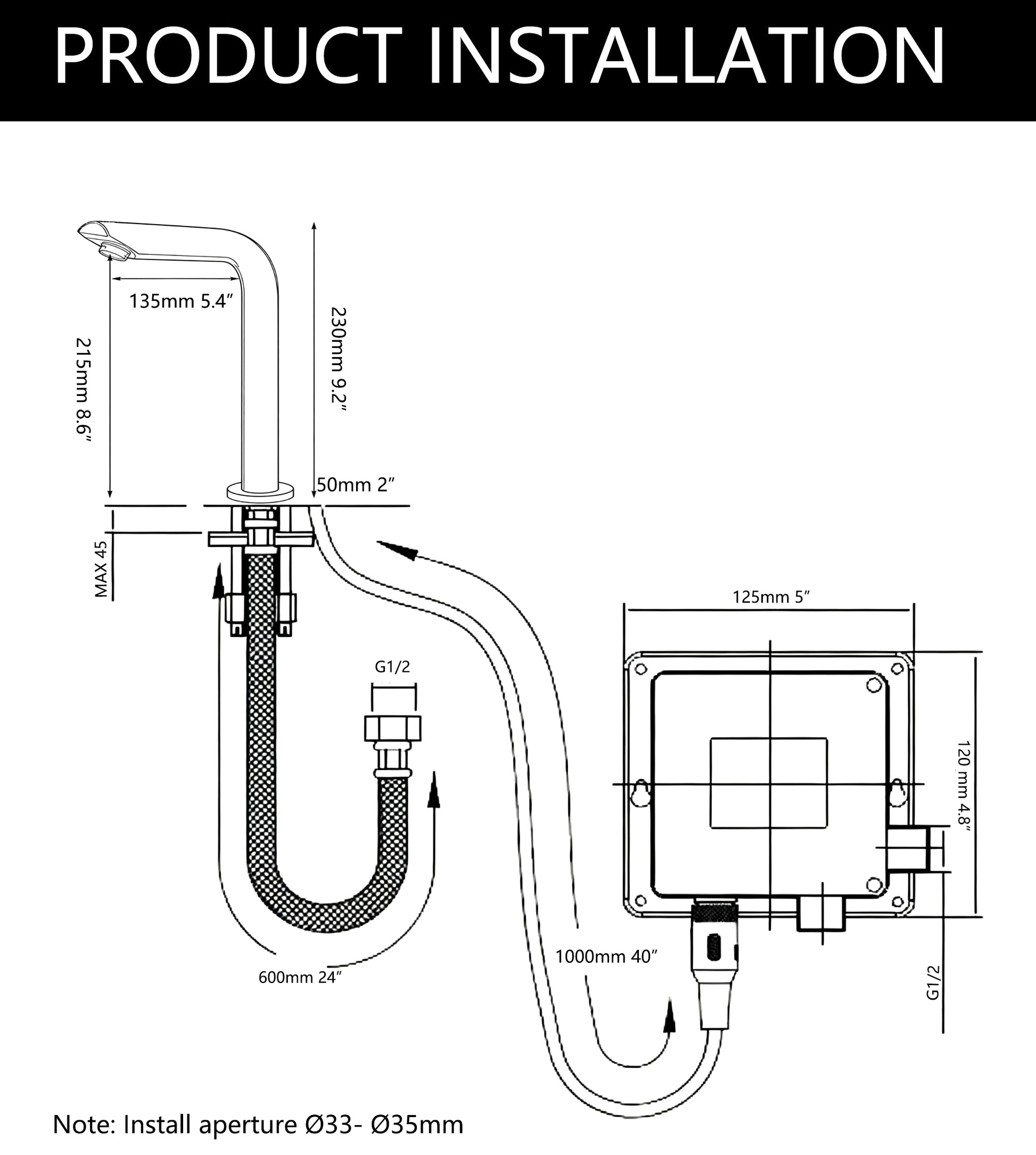 - ✅ Model/uitvoering: Zwarte sensor wastafelkraan, hoog model, opbouw