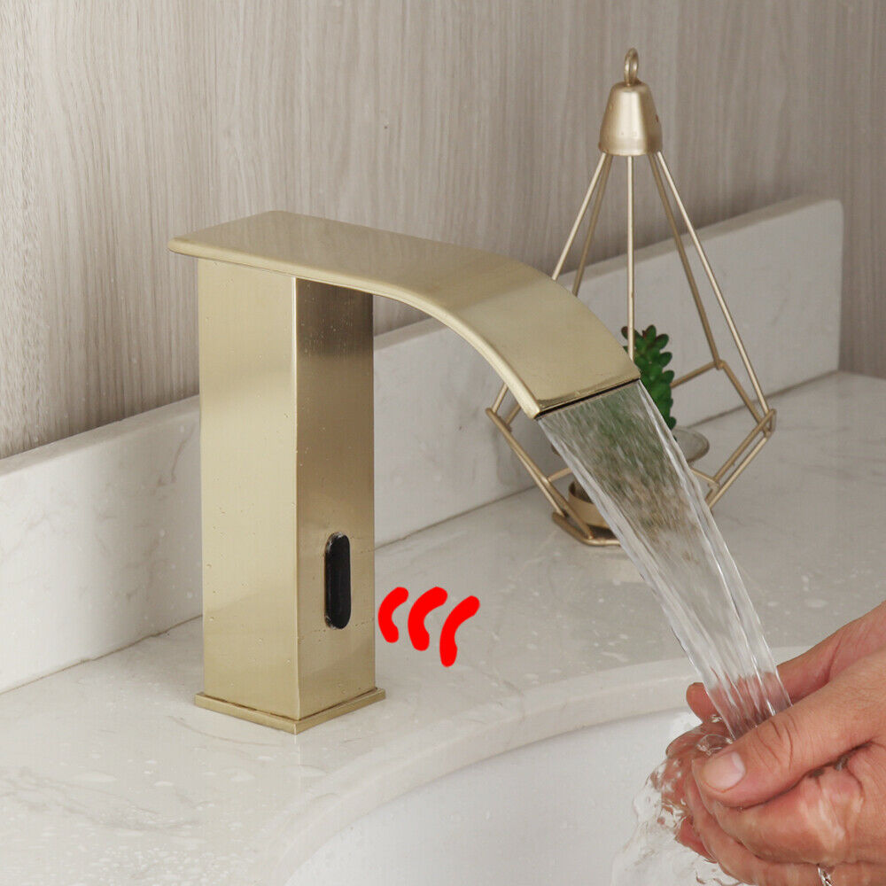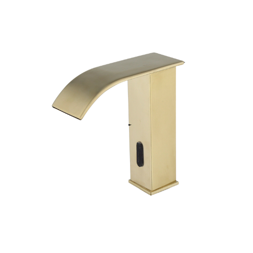 Dit is een koud water model sensorkraan met een elegante geborsteld gouden afwerking.