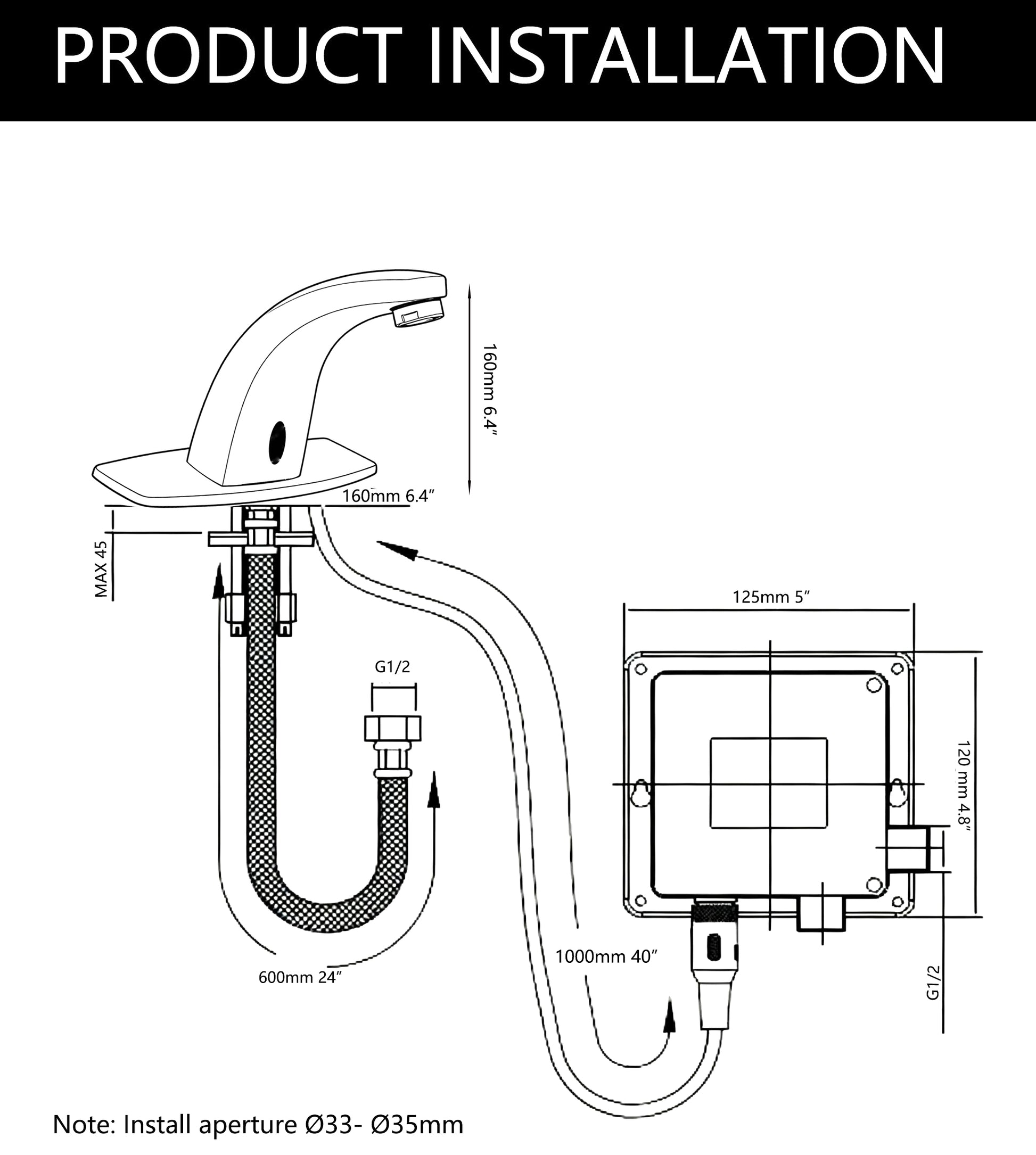 - Waterbesparing: Water stroomt zodra uw handen voor de sensor bewegen en stopt enkele seconden nadat u uw handen terugtrekt, wat leidt tot aanzienlijke waterbesparing.