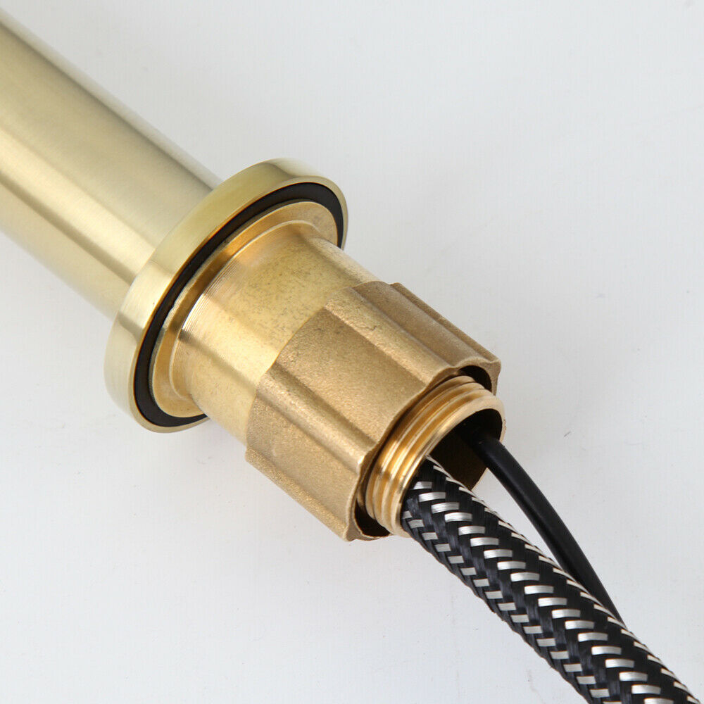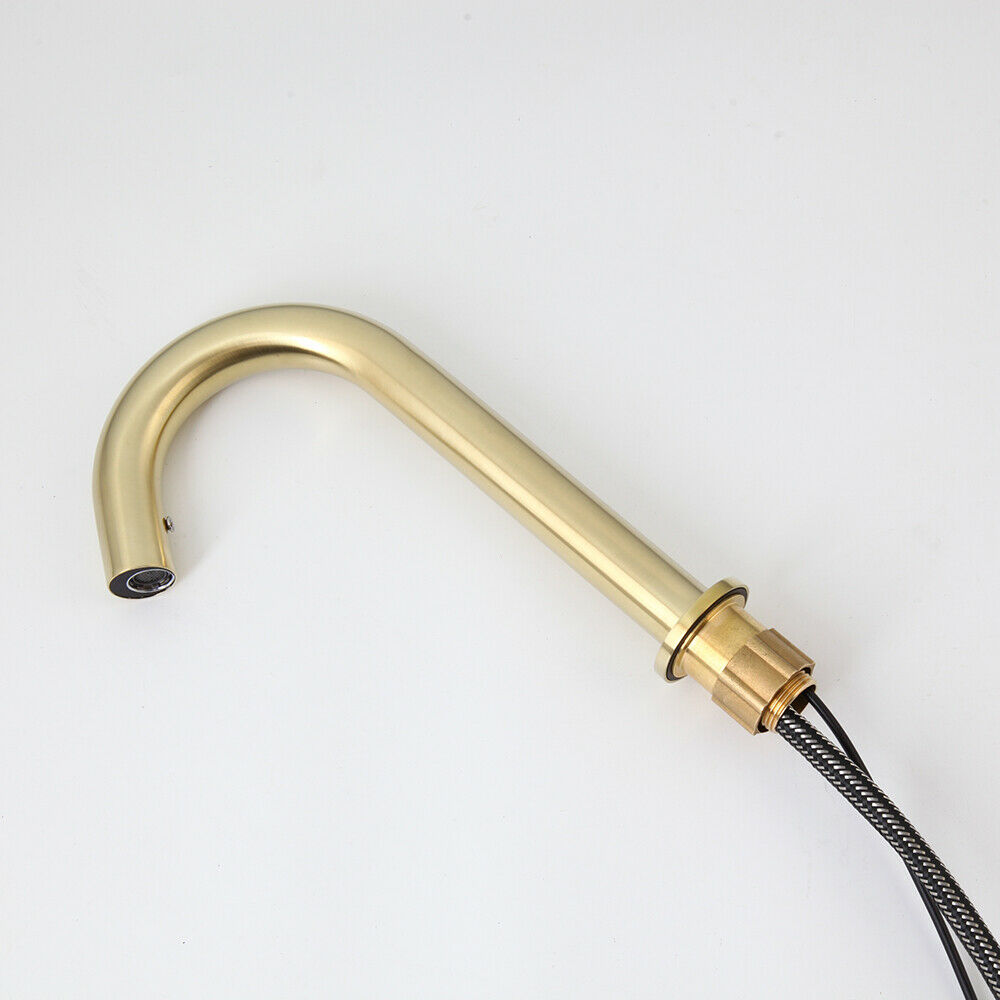 Geef uw badkamer een luxe uitstraling met de Cesaro sensorkraan in elegant geborsteld goud. Met een verfijnd ontwerp en geavanceerde technologie is deze kraan niet alleen stijlvol, maar ook functioneel en hygiënisch.