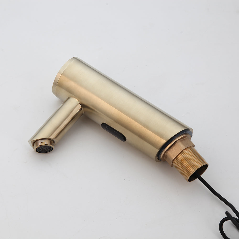 Breng luxe en functionaliteit naar uw badkamer met de Sensomatica Corto geborsteld gouden sensorkraan. Deze zorgvuldig vervaardigde kraan van massief messing met een geborstelde gouden afwerking zal uw ruimte laten stralen. Het is een koud water model, ideaal voor zowel thuis als commercieel gebruik.
