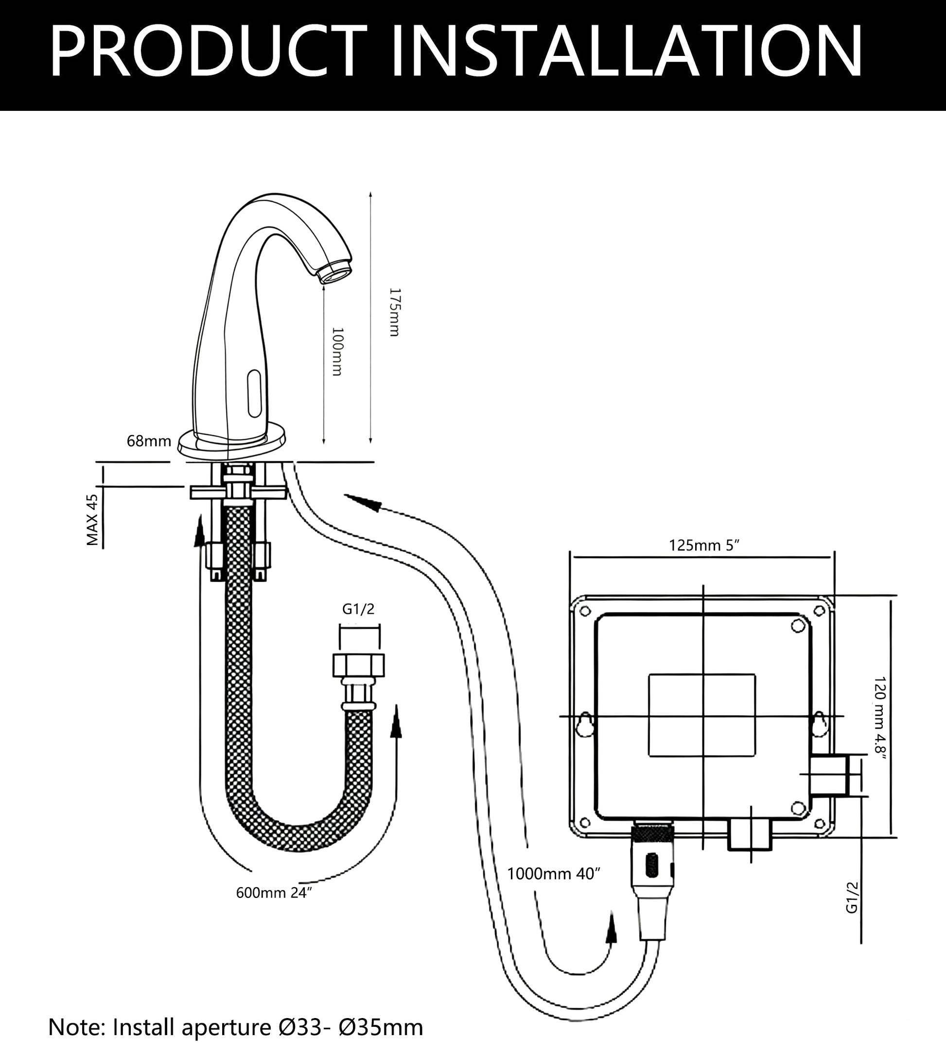 - Waterbesparing: water komt uit de kraan op het moment dat u uw handen voor de sensor beweegt en stop na enkele second als u uw handen voor de sensor weghaalt(dit is af fabriek ingesteld en kan niet aangepast worden).
