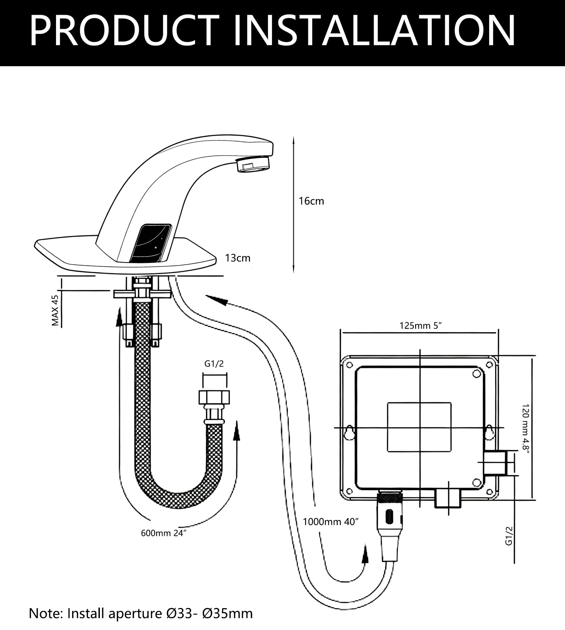 - Waterbesparing: Water komt alleen uit de kraan wanneer u uw handen voor de sensor beweegt en stopt automatisch enkele seconden nadat u uw handen terugtrekt.
