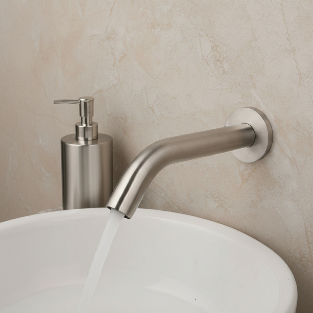 De Pesaro sensorkraan van Sensomatica combineert modern design met innovatieve technologie. Dankzij de muurbevestiging en de geïntegreerde sensor bij de uitloop, biedt deze kraan een hygiënische en gebruiksvriendelijke oplossing voor zowel thuis als commercieel gebruik.