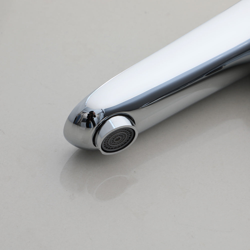 Het stijlvolle, slanke ontwerp in glanzend chroom geeft elke ruimte een moderne uitstraling. Dit model is standaard geschikt voor koud water, maar kan met een losse warmteregelaar ook aangesloten worden op warm water.