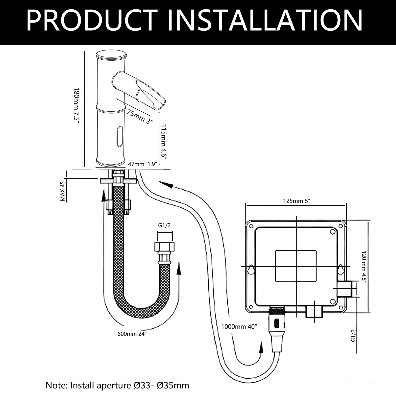 - ✅ Montagegat: Ø33 – Ø35 mm