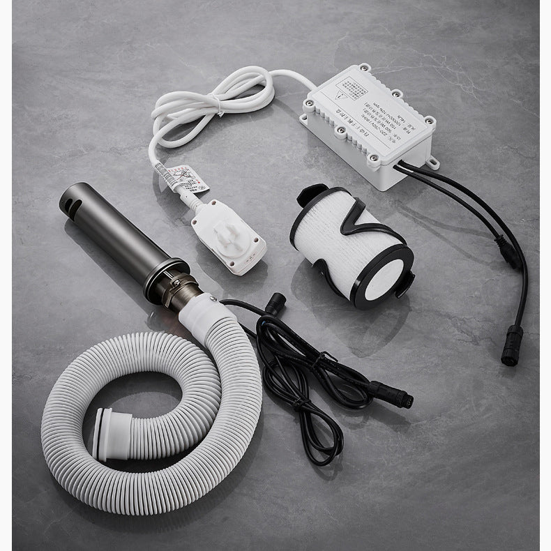 Dankzij de volledig contactloze bediening wordt de verspreiding van bacteriën sterk verminderd. Het water, de zeep en de handendroger worden automatisch geactiveerd wanneer de gebruiker de handen op de juiste positie houdt, wat zorgt voor een efficiënte en gebruiksvriendelijke ervaring. De gun metal afwerking geeft de set een moderne, luxe uitstraling die perfect past in hoogwaardig sanitair.