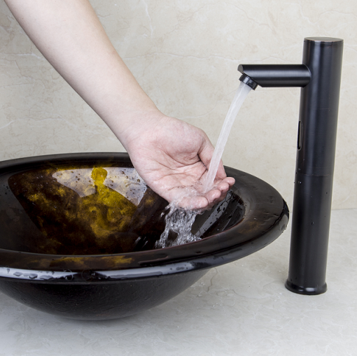 Elegante Constructie: De kraan heeft een prachtige olie bronzen afwerking die een vleugje elegantie toevoegt aan elke badkamer of commerciële ruimte. De sensor bevindt zich op een handige hoogte van 18 cm, ideaal voor verschillende wastafels en waskommen.