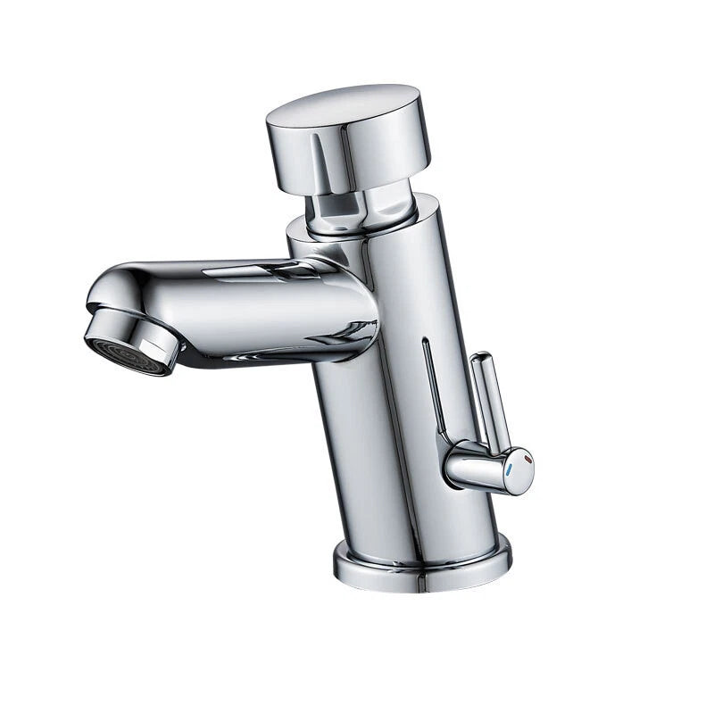 - ✅ Model/uitvoering: zelfsluitend warm/koud (drukknop + menghendel), looptijd 5–7 s (niet instelbaar)
