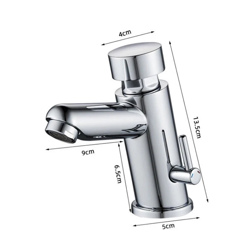 Dit warm-/koudmodel heeft een zijhendel om de temperatuur te mengen, terwijl de robuuste drukknop bovenop de waterstroom activeert. Installatie is eenvoudig dankzij de G 1/2-aansluiting en het compacte ontwerp met chroomafwerking.