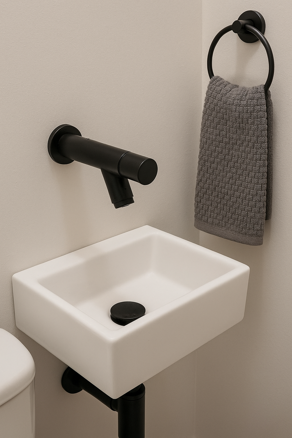 De Sensomatica zelfsluitende muurkraan combineert een stijlvol, modern ontwerp met praktische functionaliteit. Uitgevoerd in een elegante matzwarte afwerking, is deze kraan een duurzame, onderhoudsvriendelijke en visueel opvallende keuze voor badkamers, toiletruimtes en openbare omgevingen.