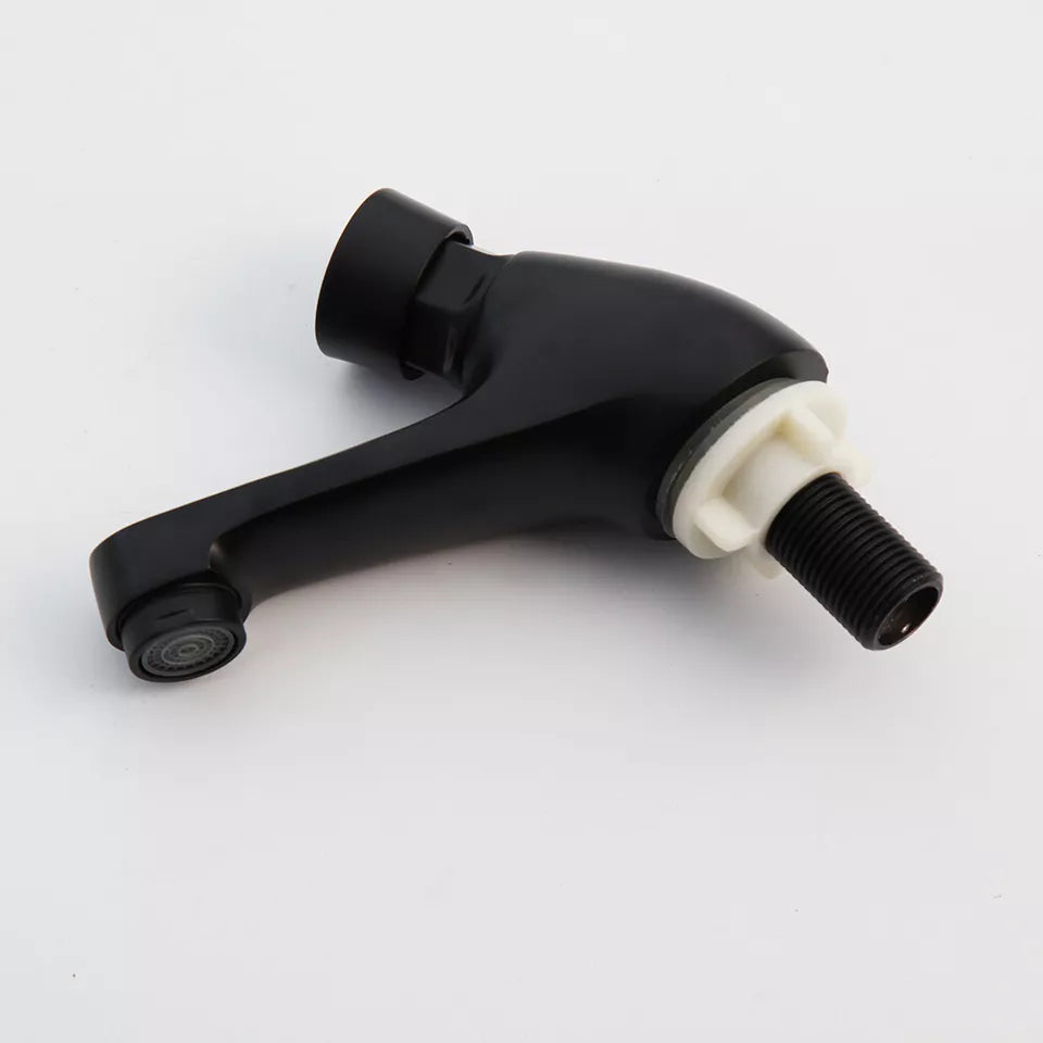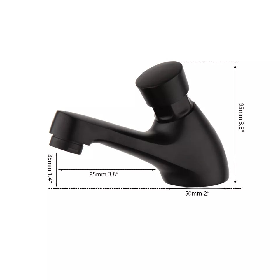 Deze zwarte zelfsluitende kraan van Sensomatica combineert stijl met functionaliteit. Dankzij de moderne zwarte afwerking is deze kraan een blikvanger in elke ruimte, terwijl het zelfsluitende mechanisme zorgt voor waterbesparing en hygiëne. De kraan werkt op koud water en sluit automatisch af na een looptijd van 5-7 seconden. Ideaal voor openbare toiletten, sanitaire ruimtes of moderne badkamers en keukens.