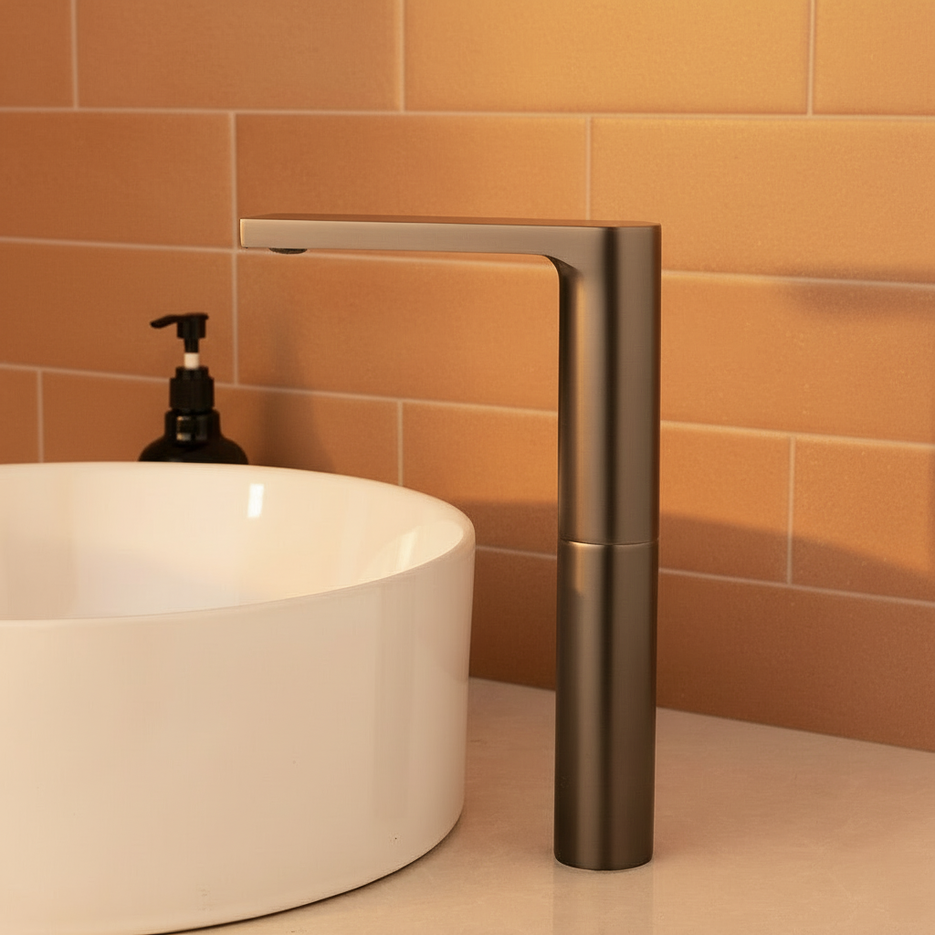 Sensomatica Sensorkraan Slen gun metal koud model, hoog model.