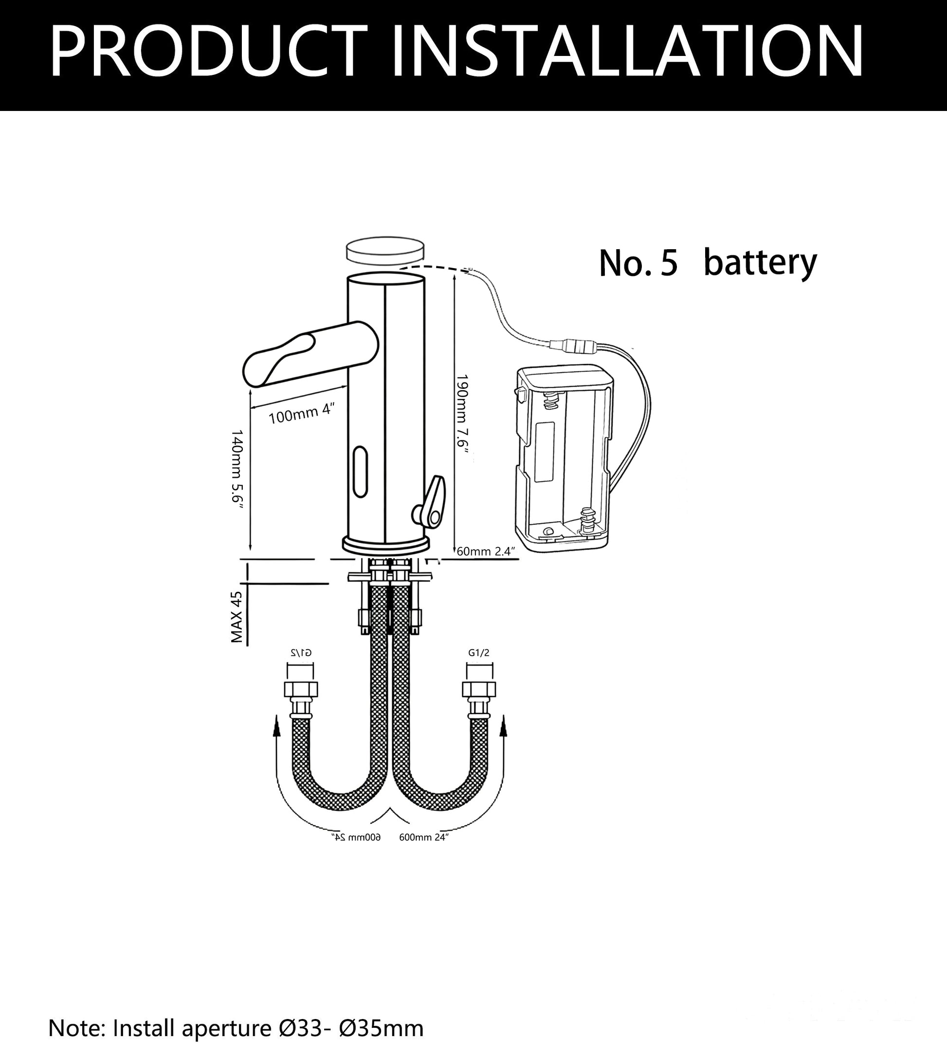 - Vermogen van de Orte sensorkraan: DC6V (4AA Alkaline batterijen)