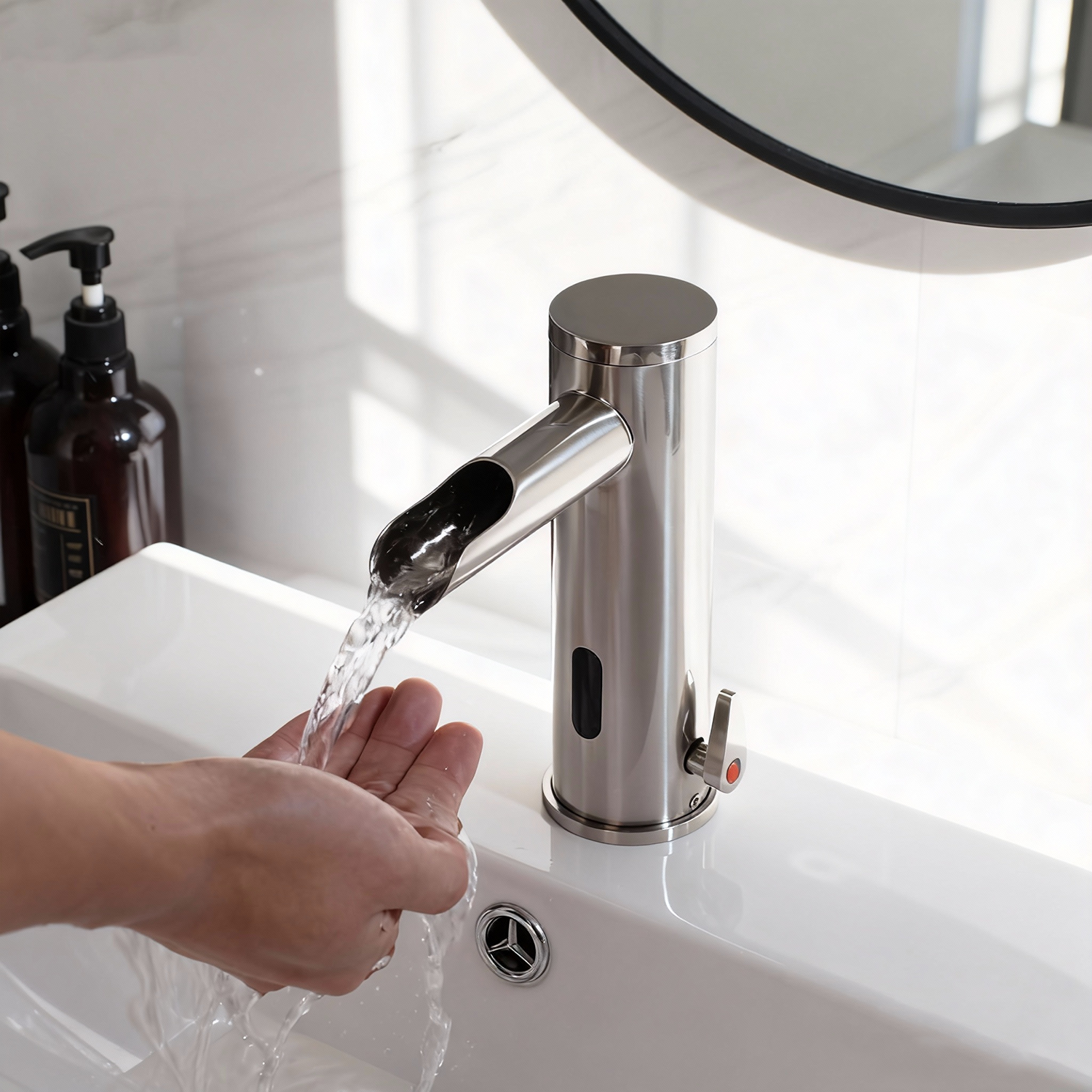 - Waterbesparing: water komt uit de kraan op het moment dat u uw handen voor de sensor beweegt en stop enkele seconden nadat u uw handen terug trekt.(dit is niet regelbaar)
